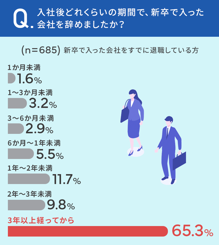 「3年以上経ってから」で会社を辞めた。新卒で入った会社を辞めた理由は?