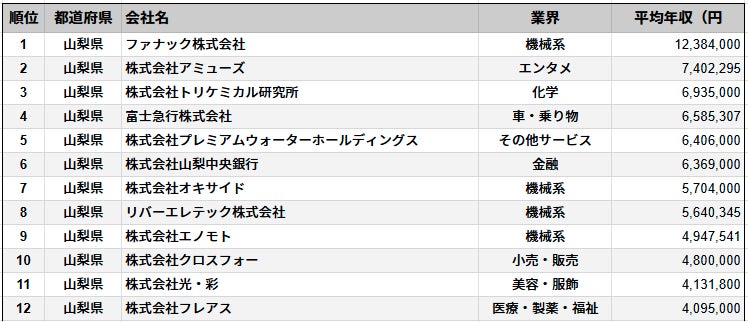 【2025年版】山梨県の上場企業・平均年収ランキングを公開!/SalesNow DBレポート