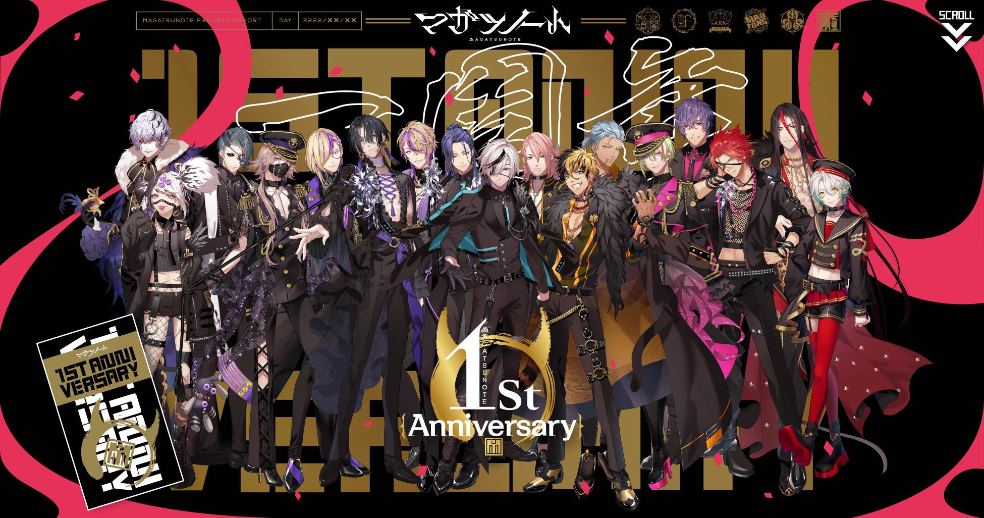 また、1周年を記念するリアルイベントとして、3月16日(木)に声優が出演するファンイベント『有害人類集会』、3月28日(火)にはコラボアーティストが楽曲を披露する主催LIVE『大祝戦』を開催いたします。『大祝戦』には1周年当日に発表される新コラボアーティストも参加予定です。両イベントのチケット情報はローチケ( https://l-tike.com/magatsunote/ )にてご確認ください。