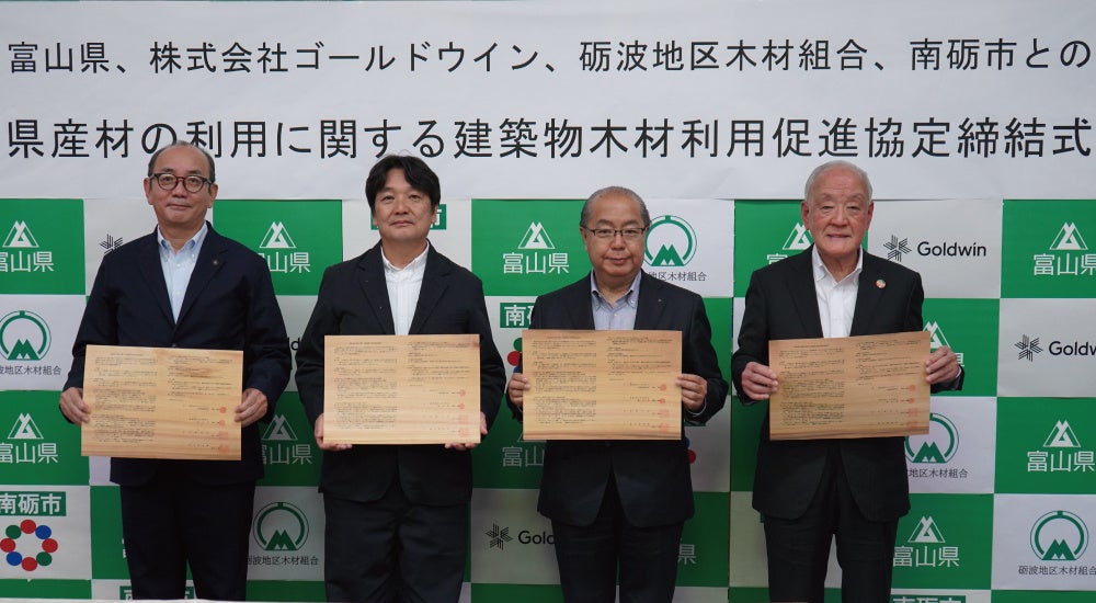 ≪富山県、株式会社ゴールドウイン、砺波地区木材組合、南砺市が連携≫