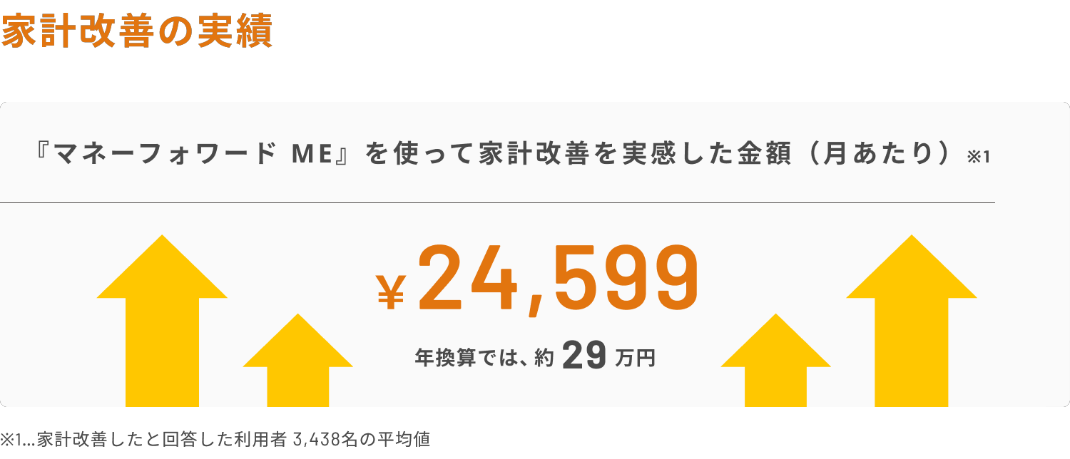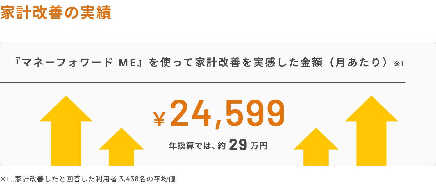 アンケート調査の結果、『マネーフォワード ME』を利用して家計改善を実感した人のうち51%は「無駄遣いが減った」「お金の勉強や情報収集をするようになった」と回答し、平均で月24,599円(年間約29万円)の改善を実感されています。物価上昇や円安が続く中でも、家計改善に繋がっていることが分かりました。