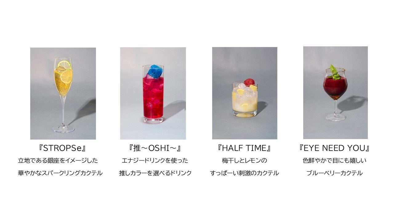 店舗を代表するシグネチャーカクテル『STROPSe』は、立地である銀座をイメージし、華やかなスパークリングカクテルとして仕上げました。「スマートドリンキング」※の考えを取り入れ、飲む人の体質やシーンに合わせてアルコール分0%と3%を選択できます。eスポーツプレーヤーをイメージしたオリジナルドリンク『推~OSHI~』は全6色展開であり、選手と応援する人の一体感を生み出します。“eスポーツをより楽しめるオリジナルドリンク”を提供することで、『STROPSe』の体験価値を最大化し、魅力の発信とeスポーツのさらなる認知拡大を図ります。