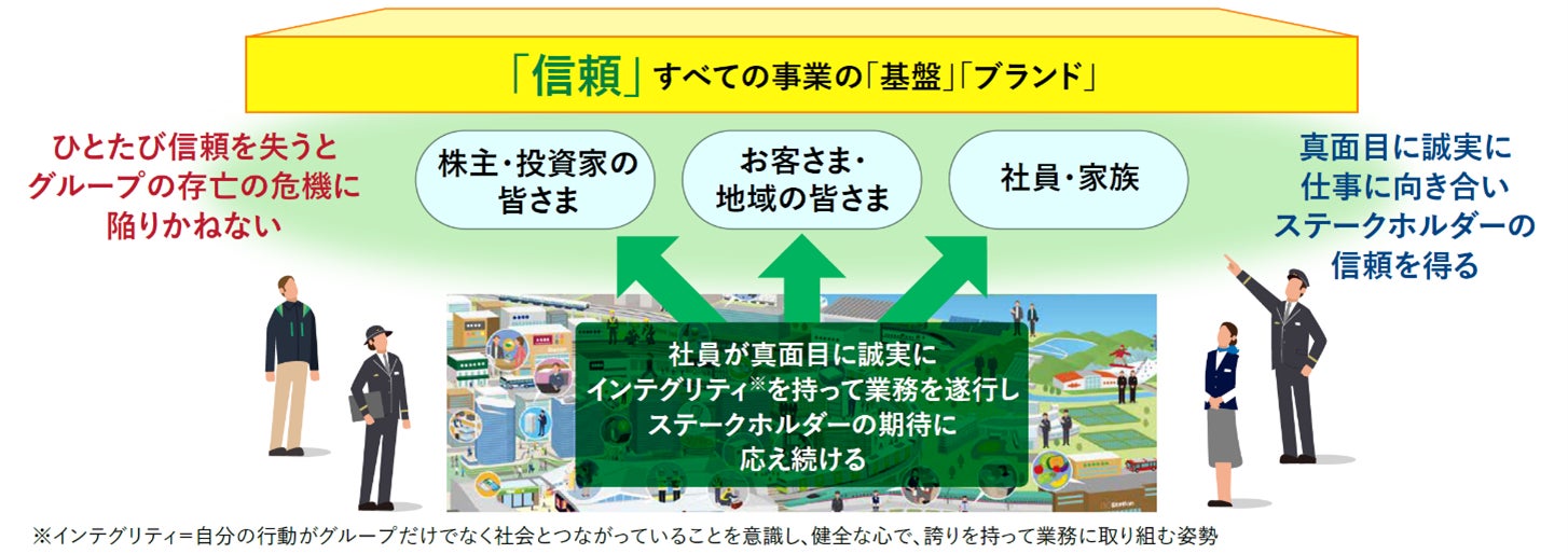 ひとたび不正・不祥事・重大な事故などの事象を発生させてしまうと、ステークホルダーからの信頼を失い、グループの事業の基盤が崩壊しかねないということを強く意識し、2024年度から相次いで明らかになった信頼を損なう事象を厳しい教訓と捉え、コンプライアンスの確保とグループ全体のガバナンスの改善と強化に取り組み続けます。(本日公表「グループ全体のガバナンスの改善と強化に向けた有識者委員会の設置について」)