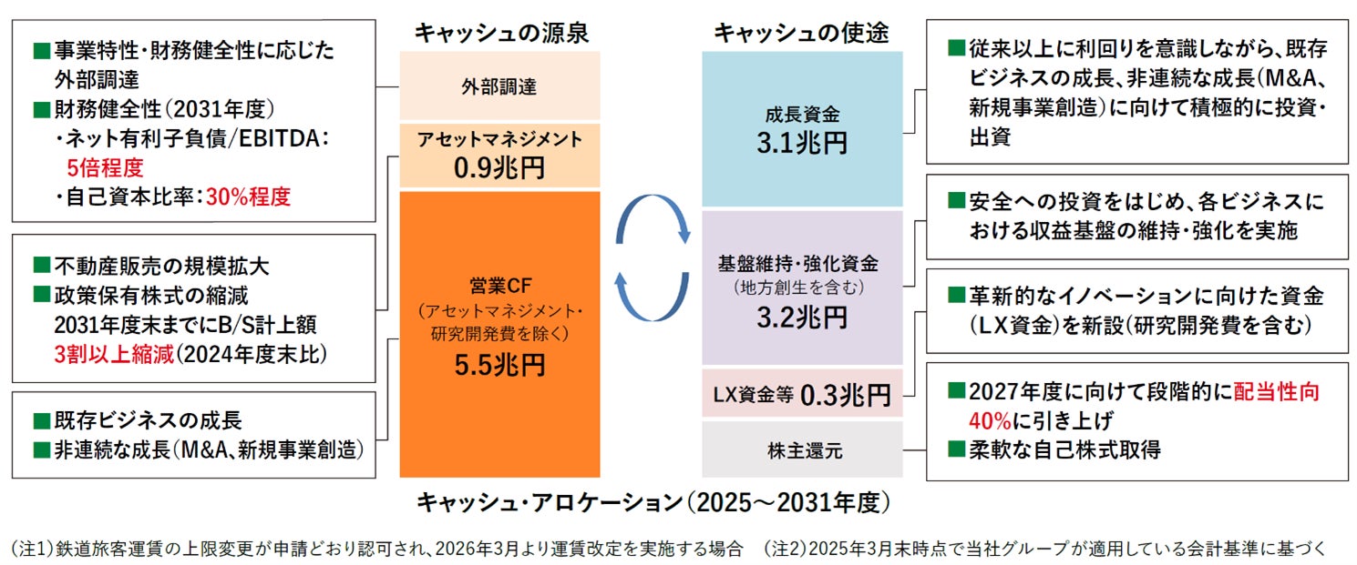 獲得したキャッシュは、「成長資金」および「基盤維持・強化資金」に重点的に充てつつ、革新的なイノベーションを目的とする「LX資金」にも振り向け、思いやりとワクワクにあふれる社会を創ります。