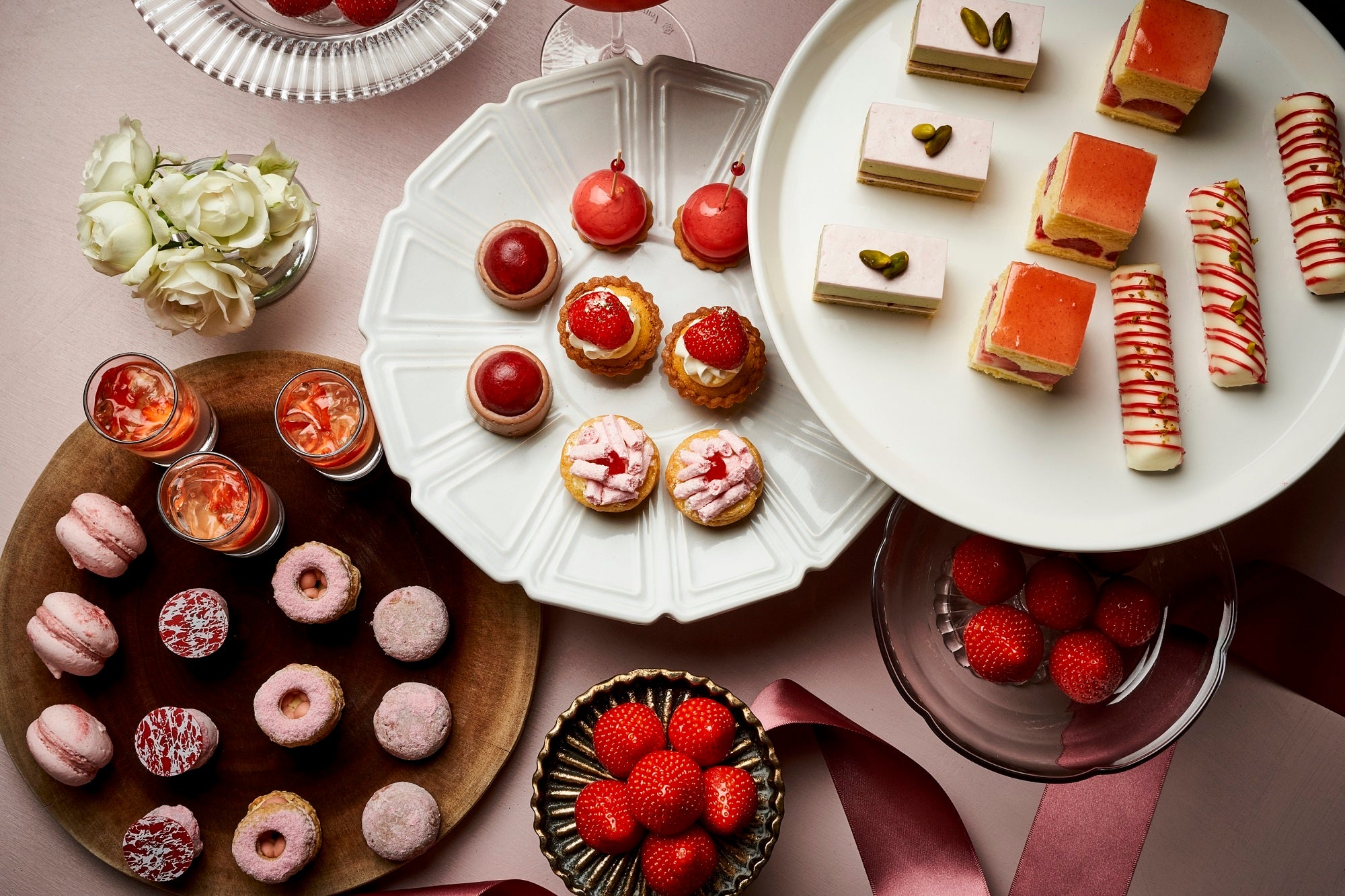 バー「麓座」では、2023年1月7日(土)から3月26日(日)までの期間の土日祝日限定で苺のスイーツを販売します。エレガントシックな空間で召し上がっていただく、大人の苺スイーツブッフェと苺のイブニングハイティーをご提案します。