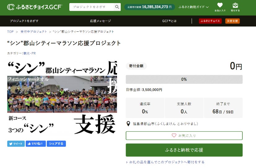 福島県郡山市とふるさとチョイス、ふるさと納税制度を活用したガバメントクラウドファンディング®で、郡山シティーマラソンの開催支援を目的としたプロジェクトを開始