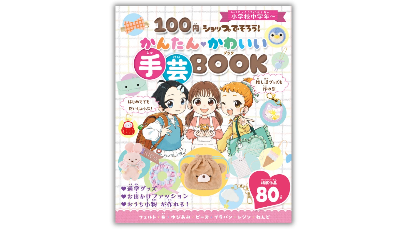 ※本書は、ポプラ社で刊行された「かわいい!がいっぱい 100円ショップではじめての手芸」(2025年刊・全5冊)の『フェルト・羊毛フェルトでつくる』『ビーズ・プラバン・レジンでつくる』『布