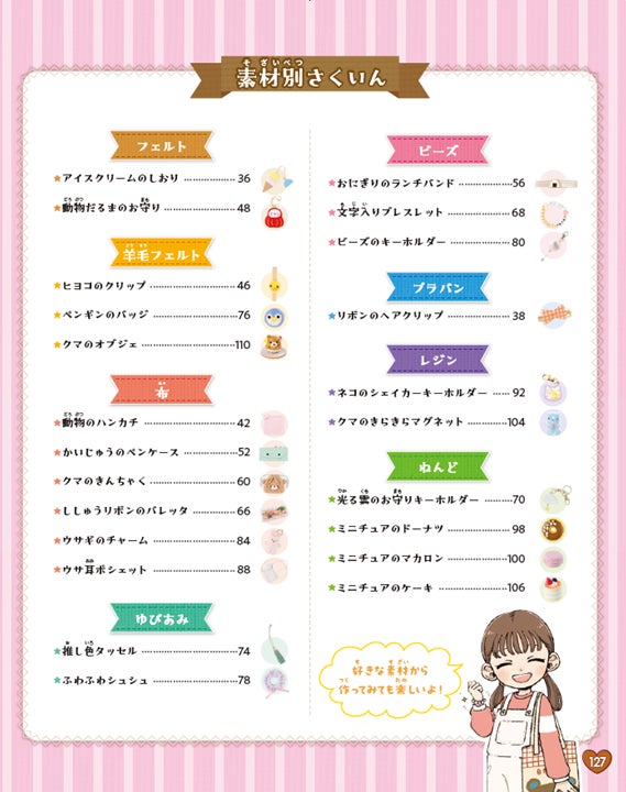 かわいいキャラクターたちと一緒に手芸に挑戦する気分が味わえ、読みものとしても楽しめます。
