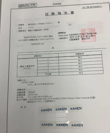- 国内の試験機関でも微粒子の約99.6%をカットできる高い性能が認められました