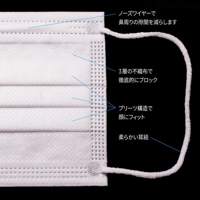 株式会社Glotureは、コロナウイルスの再度の拡大を受けて、自社ECサイト「GLOTURE.JP」にて好評発売中の不織布で99.6%の微粒子をカットする「柔らか立体マスク」(国内試験済み)を1月14日より、価格を大幅に改訂いたします。