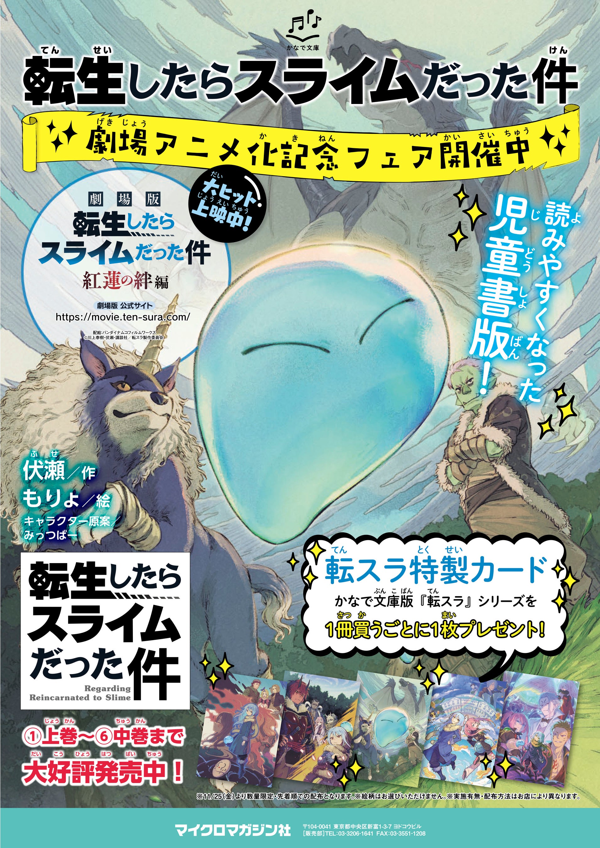 マイクロマガジン社(東京都中央区)は、『劇場版 転生したらスライムだった件 紅蓮の絆編』の公開を記念し、かなで文庫 「転生したらスライムだった件 劇場アニメ化記念フェア」を11月25日(金)より全国の一部書店で開催いたします。