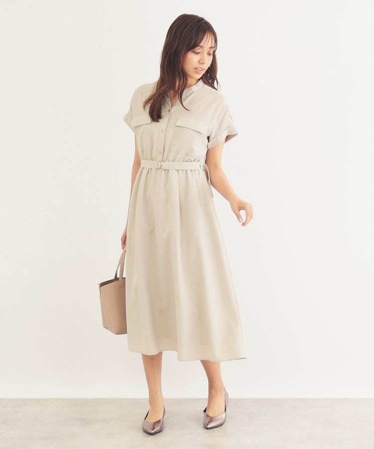 一枚でサマになる、スキッパータイプのシャツワンピース。表面のシボ感が特徴的な生地は、絶妙なハリとリネンライクな風合いです。身頃の程よいゆとりがボディラインをカバーしつつ、サラリと着用できます。素足の季節にも安心できる着丈は、オフィススタイルにもデイリーにもマッチ。多機能がついてお手入れも簡単な毎日着たくなる一枚です。