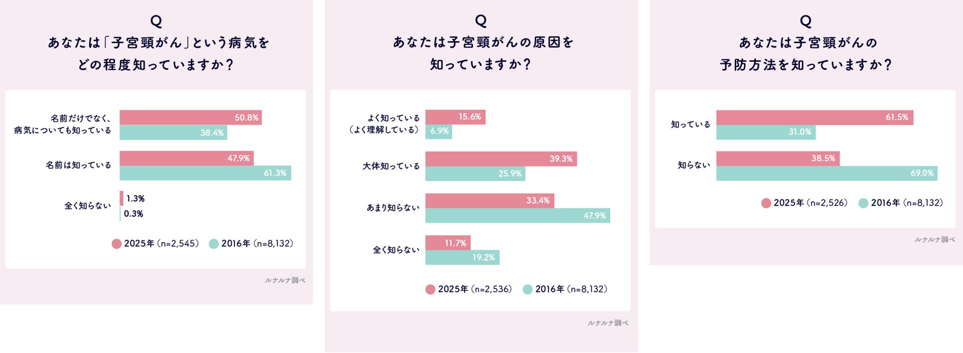 今回の調査では、子宮頸がんについて調査を開始した2016年と比較して、子宮頸がんや予防方法について理解が深まっていることがわかり、約10年間調査を続けてきた『ルナルナ』とシンクパールとしては非常に嬉しい結果となりました。