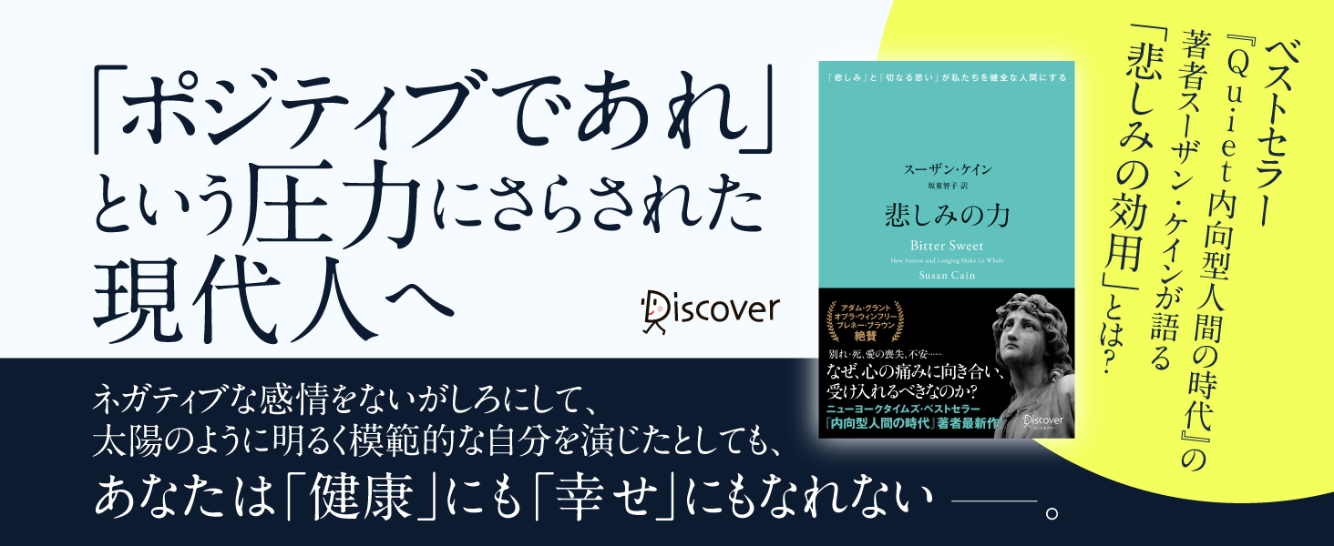 本書では、「ポジティブであれ」という圧力にさらされた現代人に向けて、全米ミリオンセラー『Quiet 内向型人間の時代』の著者であるスーザン・ケイン氏が、「幸福」の裏にある「悲しみ」と向き合う力について語ります。