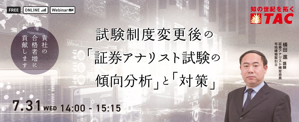 【人事・教育担当者対象】試験制度変更後の「証券アナリスト試験の傾向分析」と「対策」 セミナーを7月31日(水)に開催します。