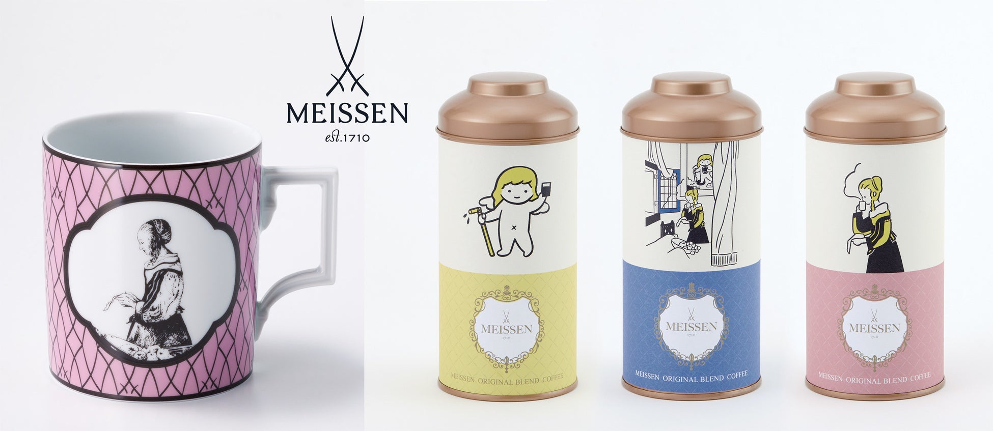 国立マイセン磁器製作所は1710年、ザクセン公国アウグスト強王の命によってドレスデン近郊のマイセンに誕生。世界の卓上文化をリードする名窯として知られています。また、強王が大変なコーヒー好きであったことから、日本ではマイセンコーヒーの販売もしています。本展ならではのコーヒーや、フェルメールにちなんだマグを販売予定です。