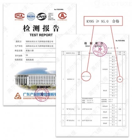 - KN95規格への適合は試験済み