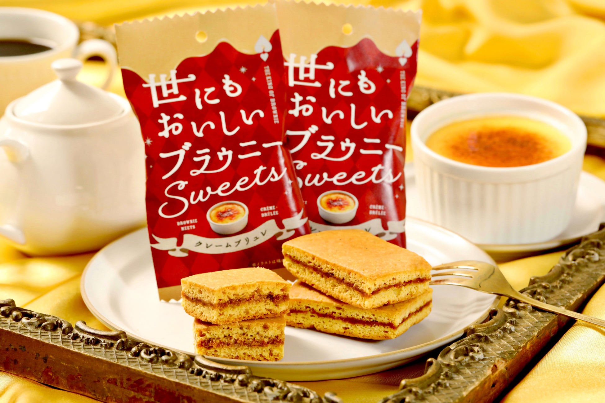 【クリームブリュレ×ブラウニー】カスタード風味のブラウニー生地と香ばしいカラメルを楽しめる『世にもおいしいブラウニー クレームブリュレ』が新登場!ほろ苦いティラミスを表現したフレーバーも同時発売