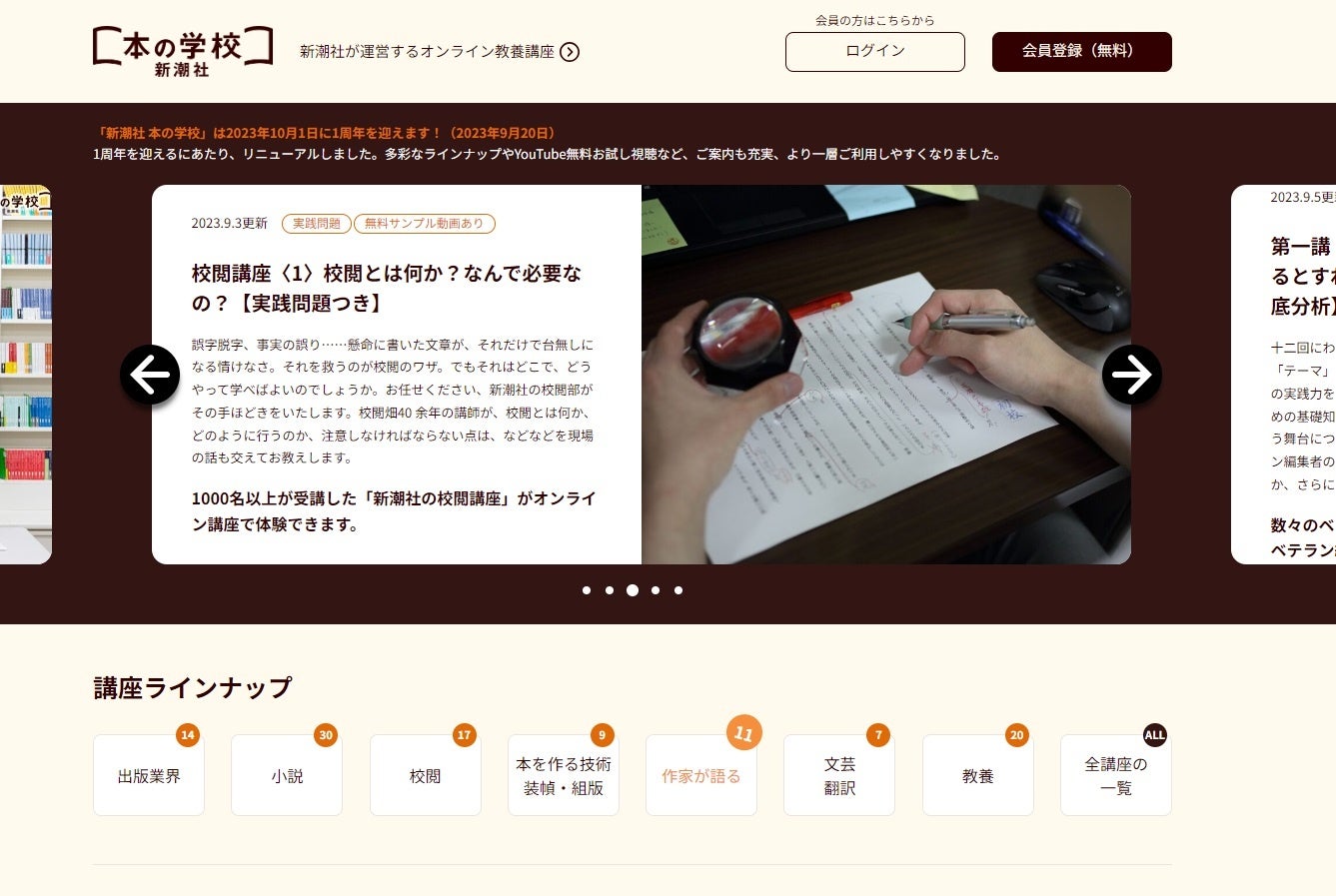 株式会社新潮社によるオンライン学習サービス「新潮社 本の学校」(※)が、2023年10月に開校1周年を迎えます。