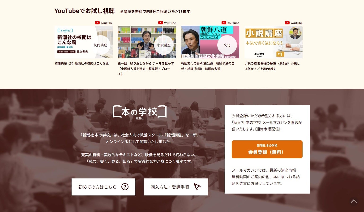 「新潮社 本の学校」ランディングページが新しくなりました。これまで以上に講座の内容や、利用の仕方がわかりやすくなりました。ぜひご覧ください!