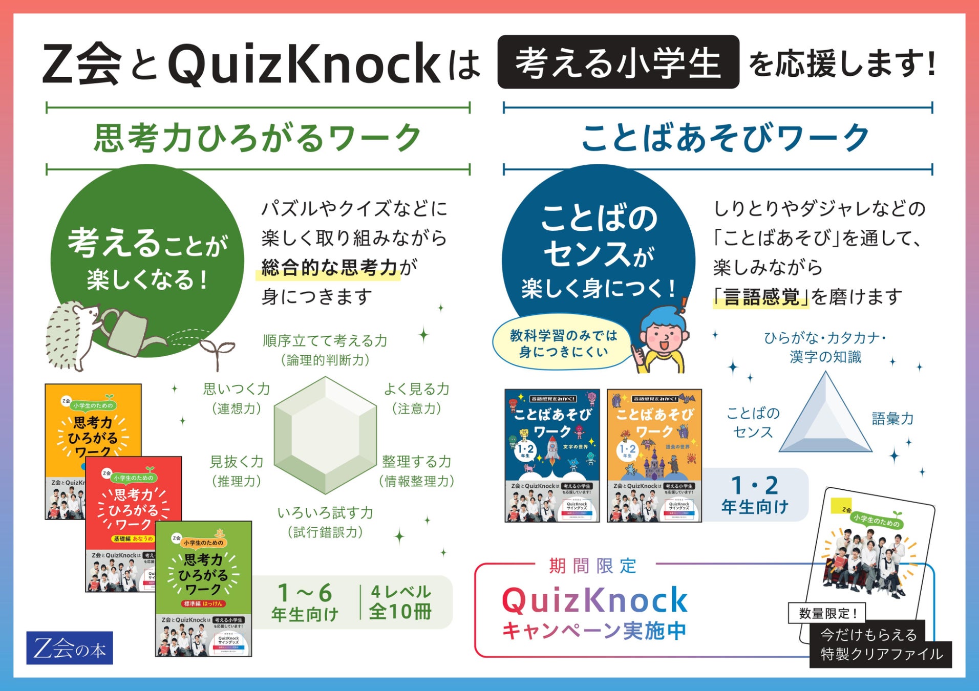 【Z会の本】夏の実力アップならZ会!全国の対象書店にて、Z会×QuizKnockによる「考える小学生応援キャンペーン」を実施します!