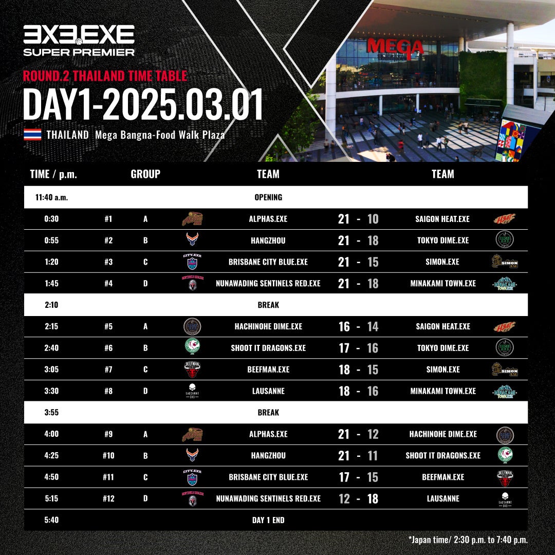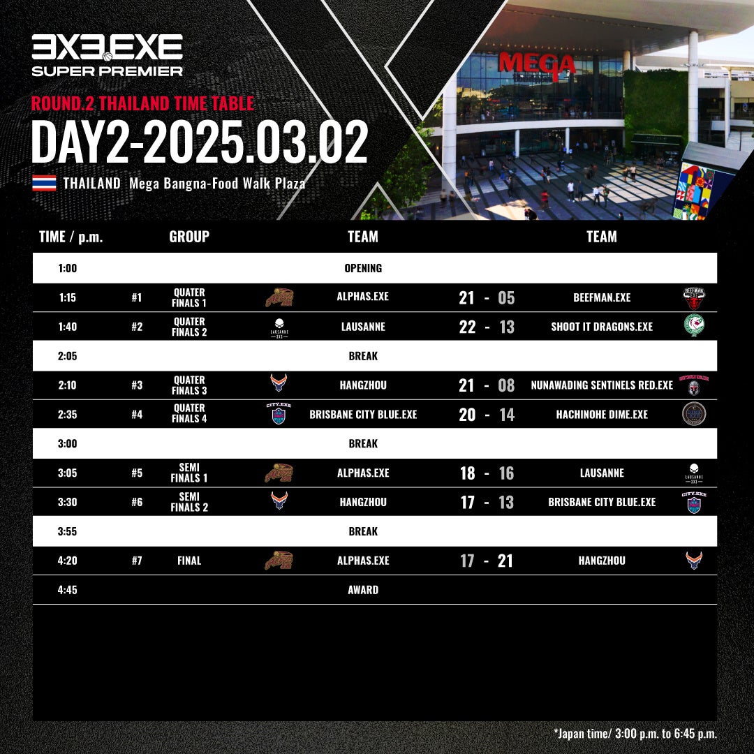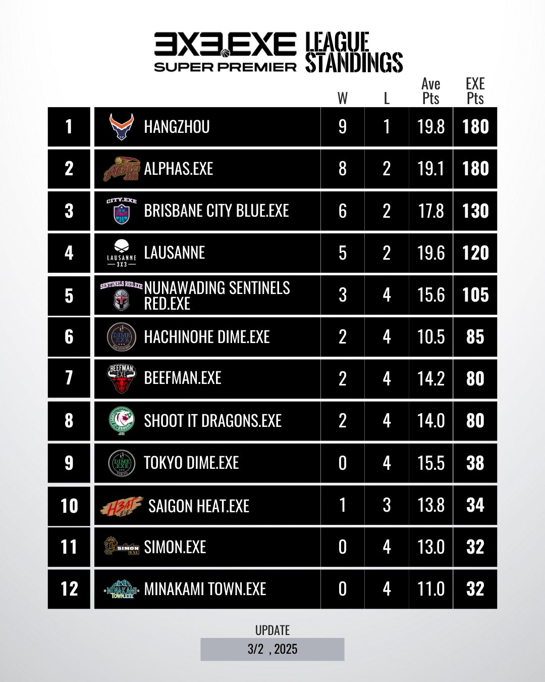 3人制バスケットボールのグローバルプロリーグ「3x3.EXE PREMIER(スリー・エックス・スリー・エグゼ・プレミア)」を運営するゼビオグループのクロススポーツマーケティング株式会社(代表取締役社長:中村考昭)が主催する、世界最高峰の国際リーグ『3x3.EXE SUPER PREMIER 2025(スリー・エックス・スリー・エグゼ・スーパー・プレミア 2025)』について、3/23(日)に開催する『3x3.EXE SUPER PREMIER 2025 FINAL』の組み合わせが、3/2(日)にタイで開催されたROUND.2の結果を持って決定致しましたため、お知らせ致します。2年目の今大会の優勝を掴み取るのは、どのチームか。ぜひご注目ください。