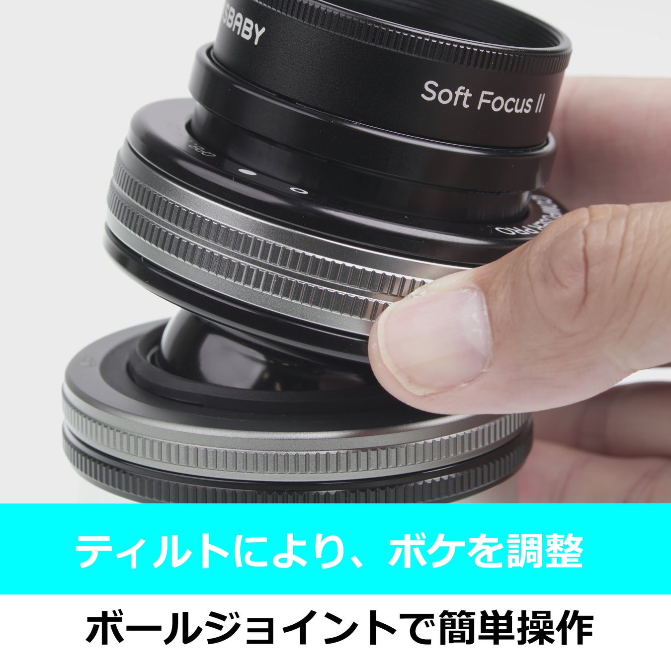 50mmソフトフォーカスレンズのオプティック(光学ユニット)である「Soft Focus II」をLensbaby コンポーザープロIIにセットし、より画像に変化をつけて撮影できるモデルです。