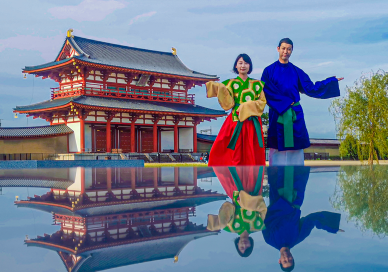 ご応募いただいたカップルのうち、23日(日)当日に「平城京天平祭2022秋~みつきうまし祭り~」のイベントステージに直接お越しいただけるカップルには、任意で奈良時代の貴族たちが着ていた装束を現代に再現した天平衣装をご着用いただき、ステージ上で向き合いながら手紙を直接伝えていただくことも可能です(遠方にお住まいの方は当館のスタッフが手紙を代読いたします)。また、ご予約の上、お越し頂いたカップルには当館からの素敵なギフトもご用意しております。