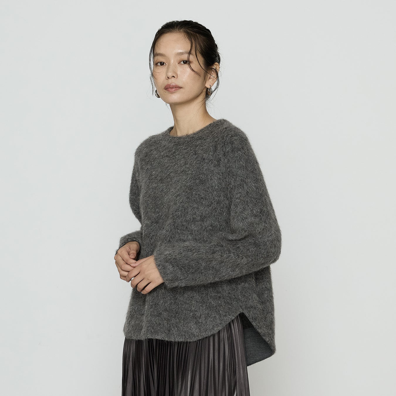 アルパカ混ジャージーの柔らかな素材感をいかし、包み込むようなビッグシルエットに仕立てました。