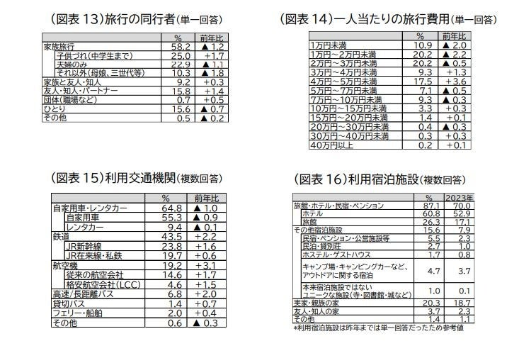 行先はやや近場が多いものの前年に比べ分散傾向、交通機関は鉄道や航空機を利用した旅行が増加