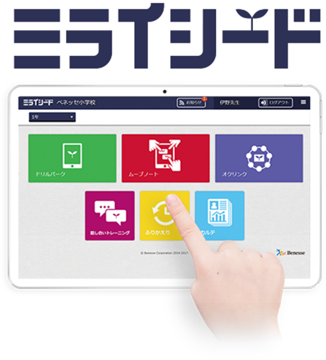 ベネッセコーポレーションの「ミライシード」は、協働学習・一斉学習・個別学習それぞれの学習場面に対応した、小中学校向けタブレット学習用オールインワンソフトです。