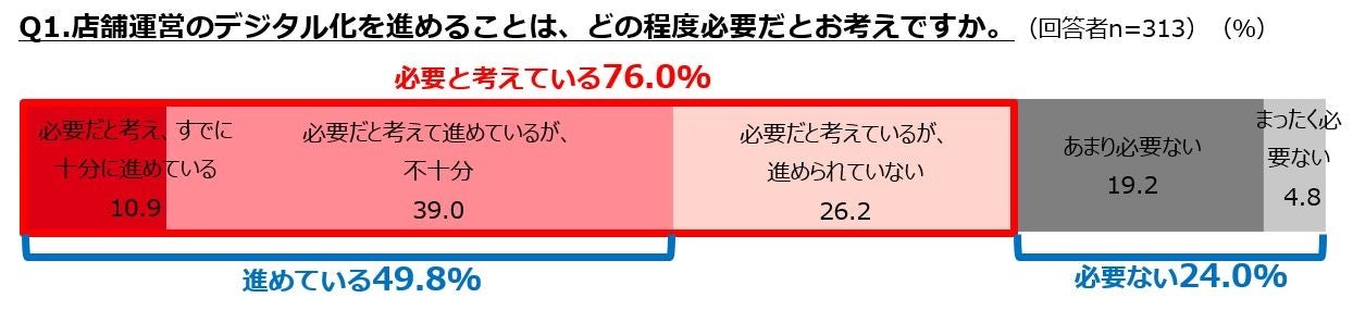 ・76.0%が店舗運営のデジタル化を進めることは必要と回答。