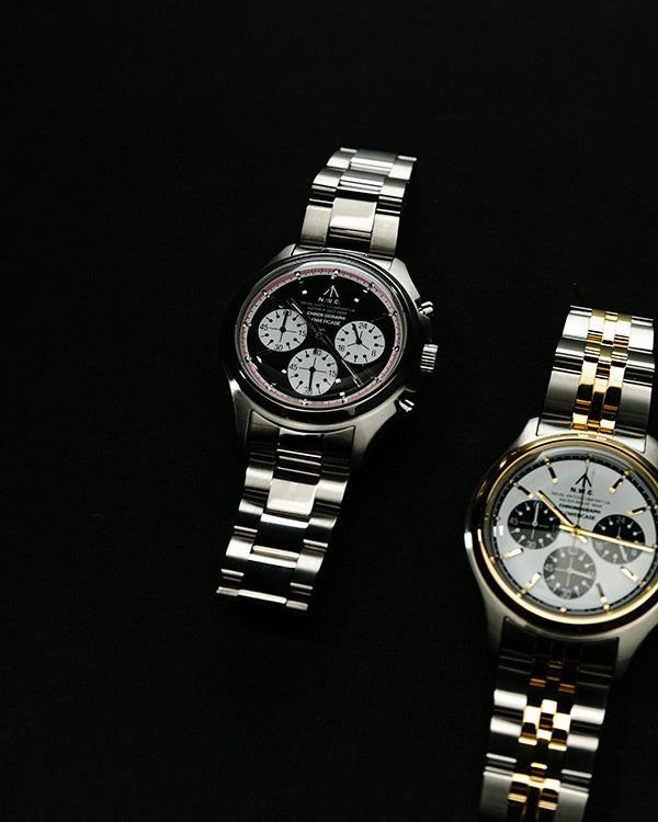 それに加え、アンティーク感を出すためにアクリル製ドーム風防を復刻。日本製 3眼クロノグラフクォーツムーブメントなど、見た目だけではなく素材面、機能面でも現代の使用に耐えうる製品となってます。