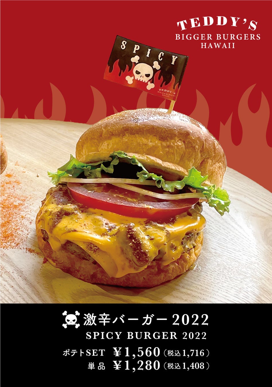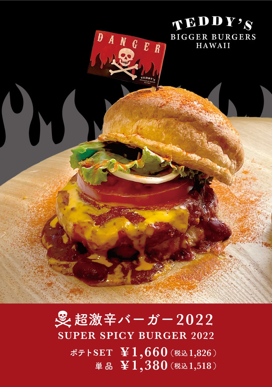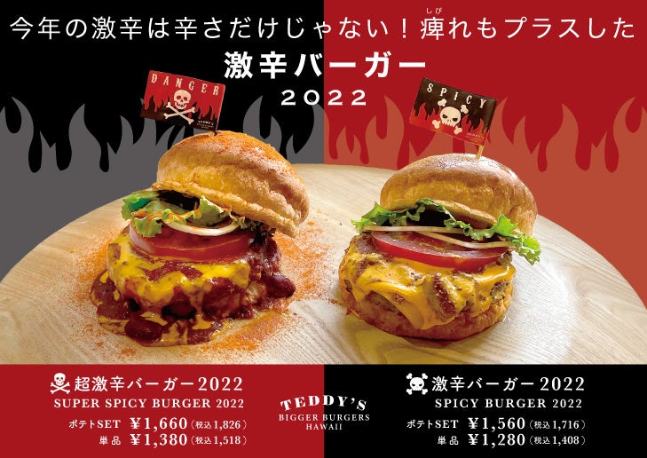 【2種の激辛】超激辛バーガー2022 & 激辛バーガー2022 。やみつきになる"痺れる辛さ"が決め手の激辛バーガー♪ ハワイ発「テディーズビガーバーガー」より新登場!