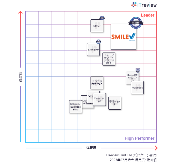 大塚商会が提供する「SMILE V 2nd Edition」が「ITreview Grid Award 2023 Summer」のERPパッケージ部門でLeaderを3期連続受賞