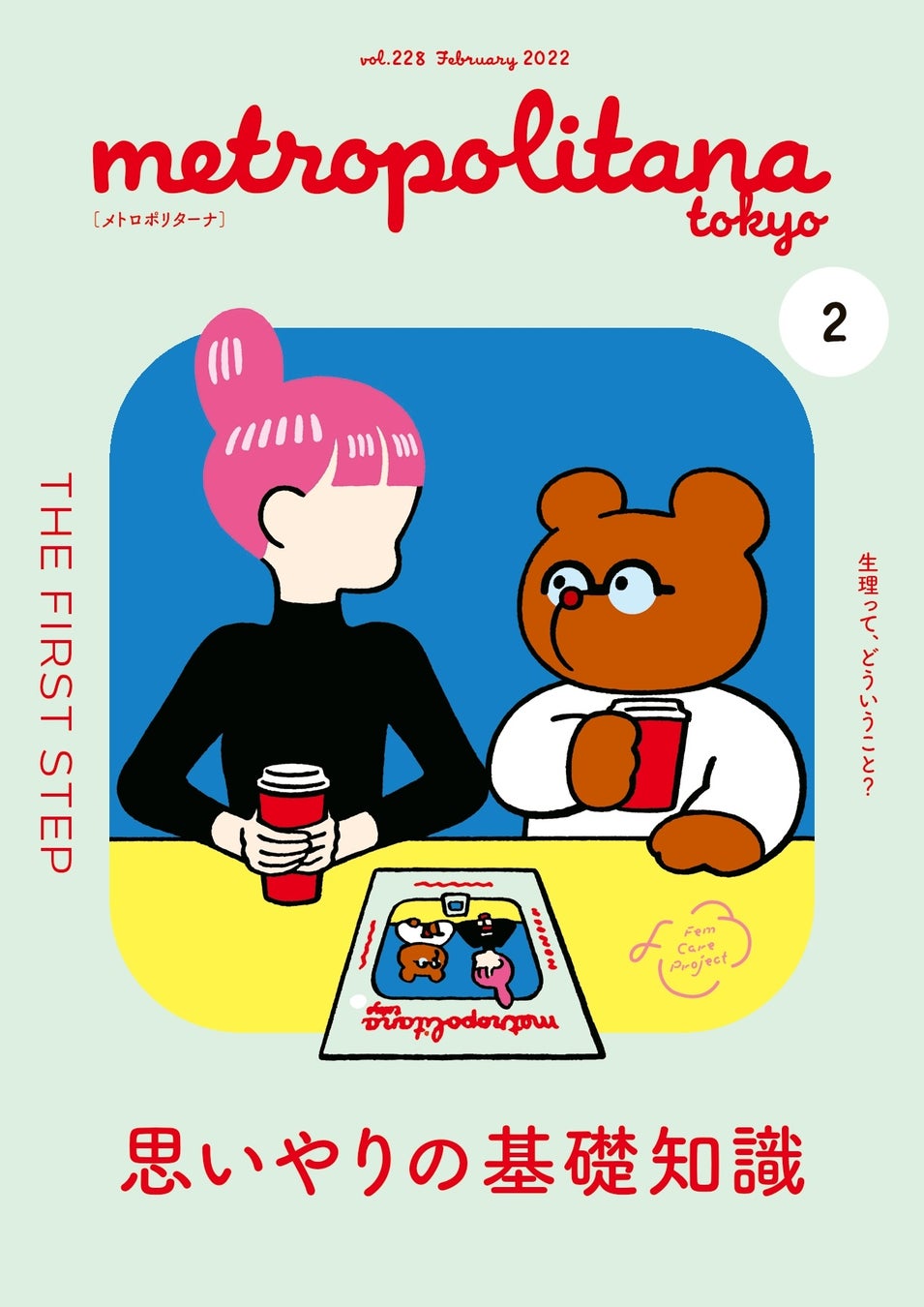 2021年10月に立ち上げた「フェムケアプロジェクト」では、女性特有の健康課題や働き方などに向き合うための特集第一弾として、メトロポリターナ2月号の巻頭で『思いやりの基礎知識―生理って、どういうこと?』を全8ページで展開します。生理に関する基本的な知識から、生理の課題に対する社会の動きや男性の意識についても紹介します。