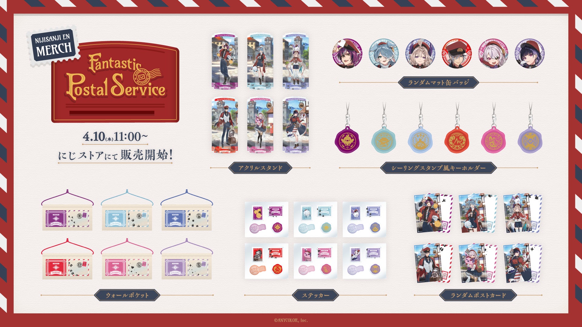 「Fantastic Postal Service」は、2025年4月10日(木)11時(JST)から、にじさんじオフィシャルストア(https://shop.nijisanji.jp)とNIJISANJI EN Official Store(https://nijisanji-store.com)にて販売を開始いたします。