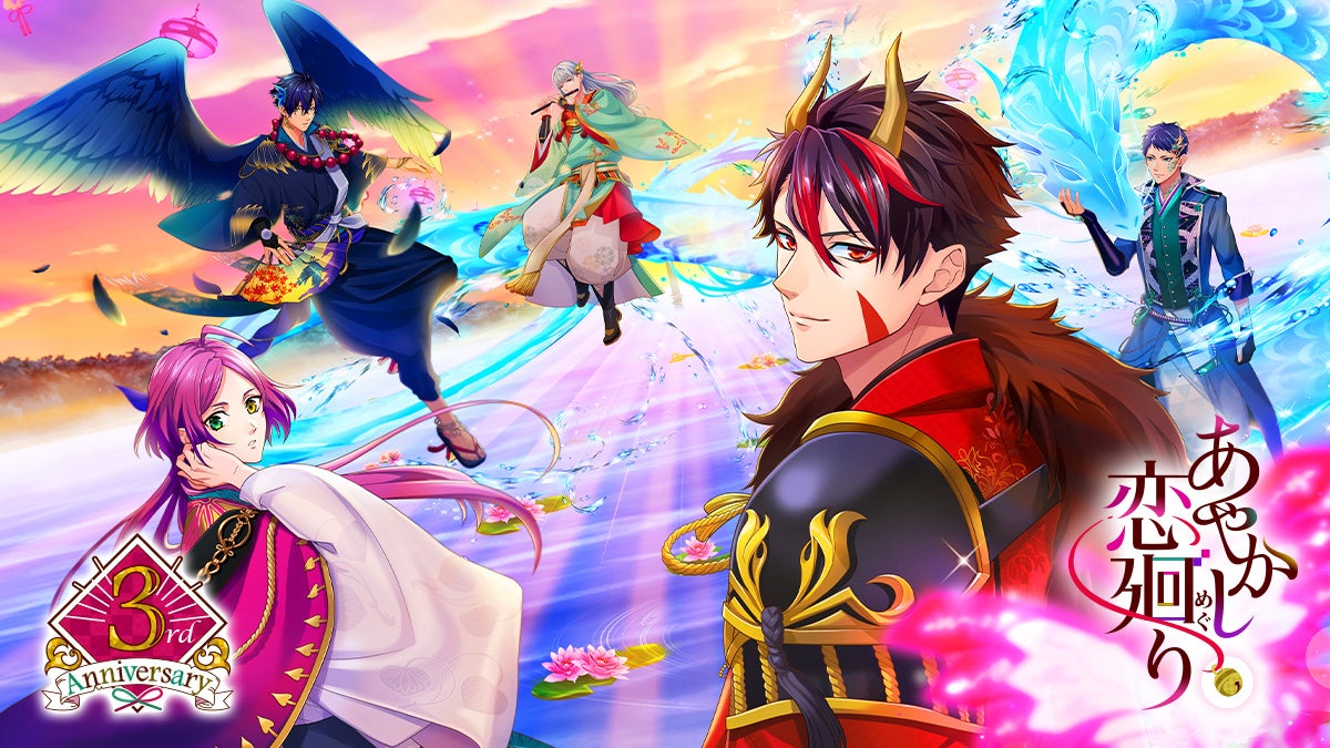 「あやかし恋廻り」 (以下、「あや恋」)は、文明開化で華やぐ明治時代の帝都を舞台に、突然陰陽師の力に目覚めた主人公が、前世の縁で結ばれた妖(あやかし)たちと共に大いなる陰謀に立ち向かっていく、明治浪漫ファンタジーです。2018年に配信開始して以降、魅力的で個性豊かなキャラクターたちや美麗イラストでご好評いただいており、今年10月30日(日)に配信4周年を迎えることができました。