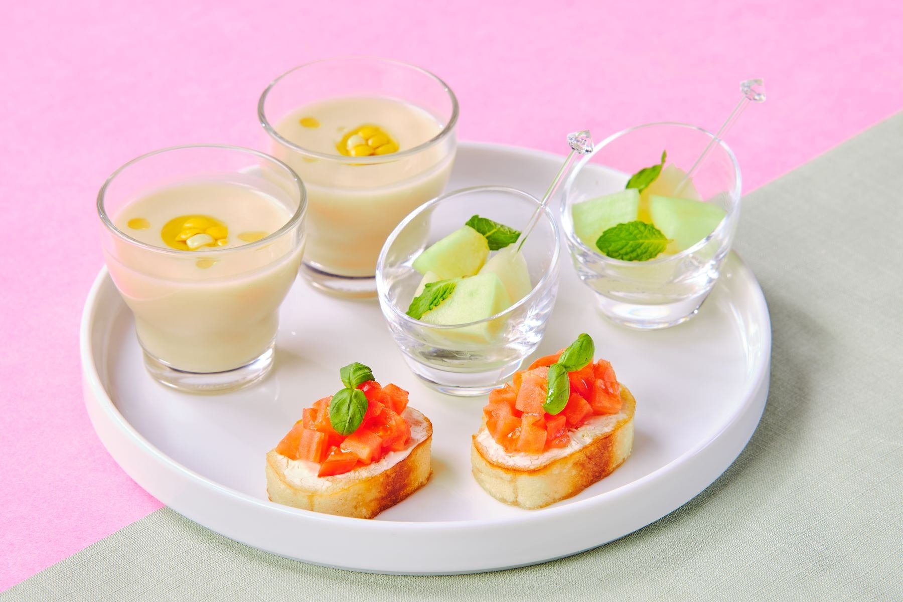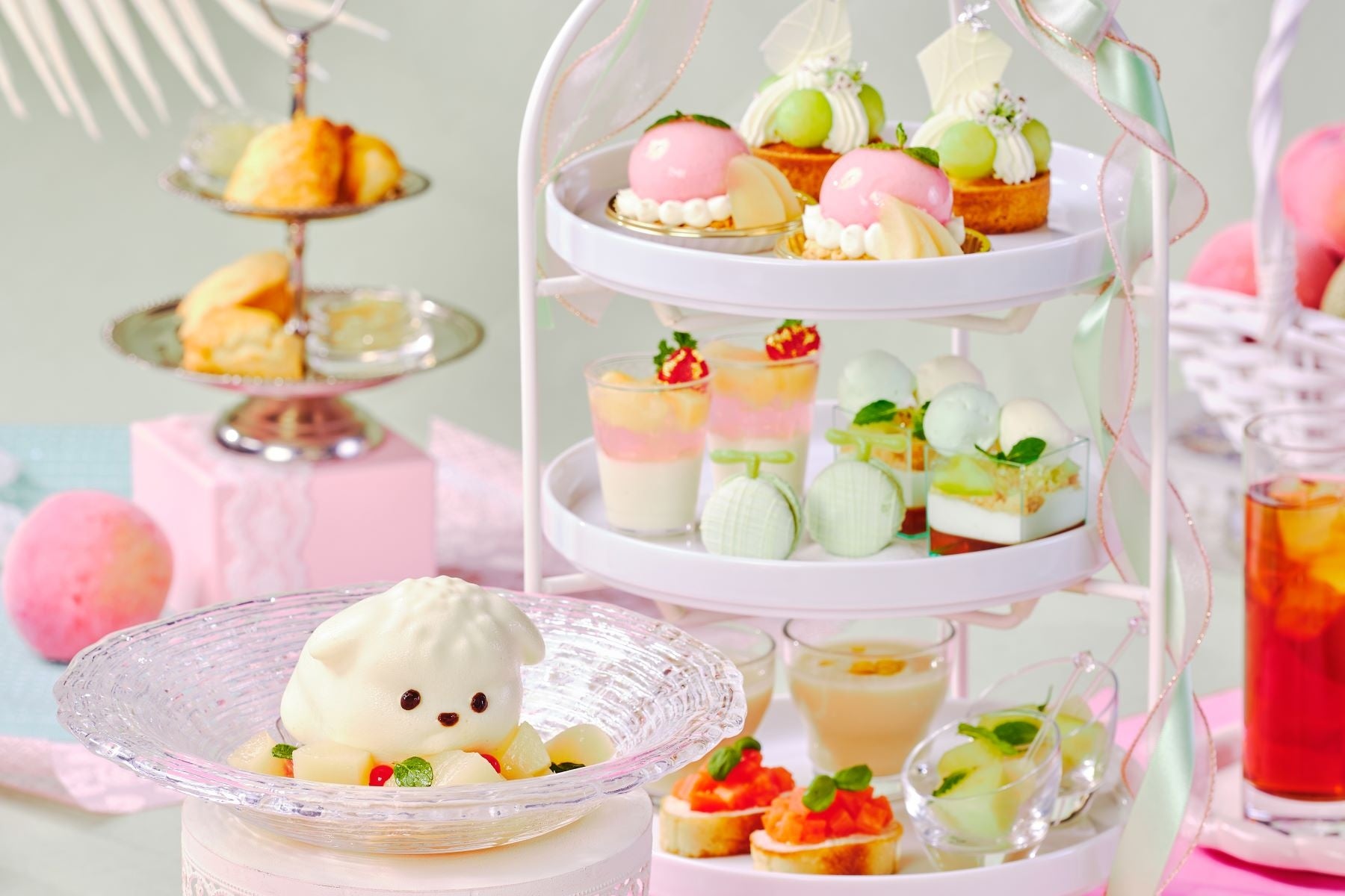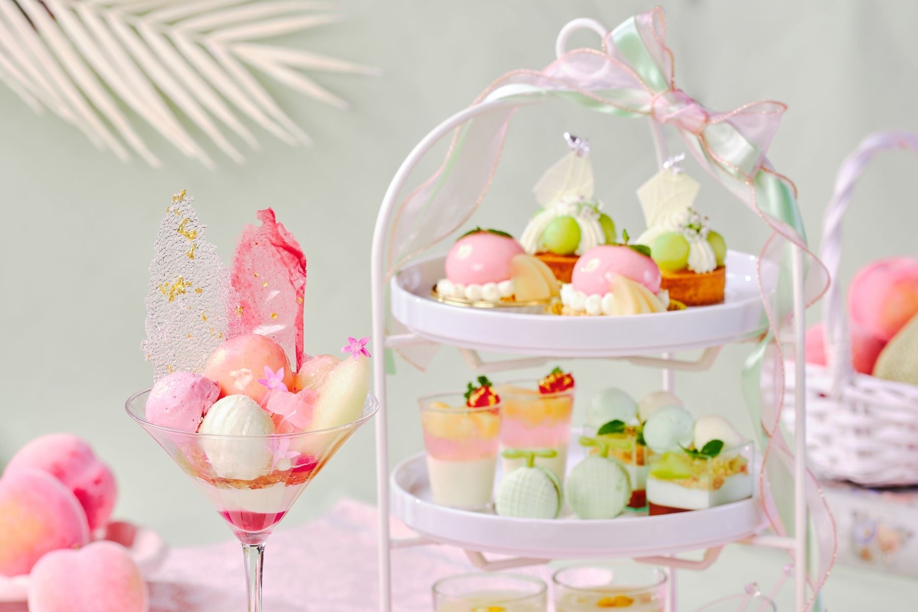 旬の桃をふんだんに使用したツヤっと輝くムースをはじめ、ジューシーなメロンの果実溢れるメロンタルト、プルンとしたジュレとふわりと香るミントのパンナコッタが相性抜群の桃ジュレとミントのパンナコッタ、コロンとしたフォルムが可愛いメロンマカロンを提供します。他にも、メロンの果実やジュレ、メロンシャーベットにクランブルのサクサク食感を楽しめる紅茶香るメロンパフェなど旬のフルーツ“桃”と“メロン”を贅沢に使用した、一つ一つにこだわったスイーツをご賞味できます。