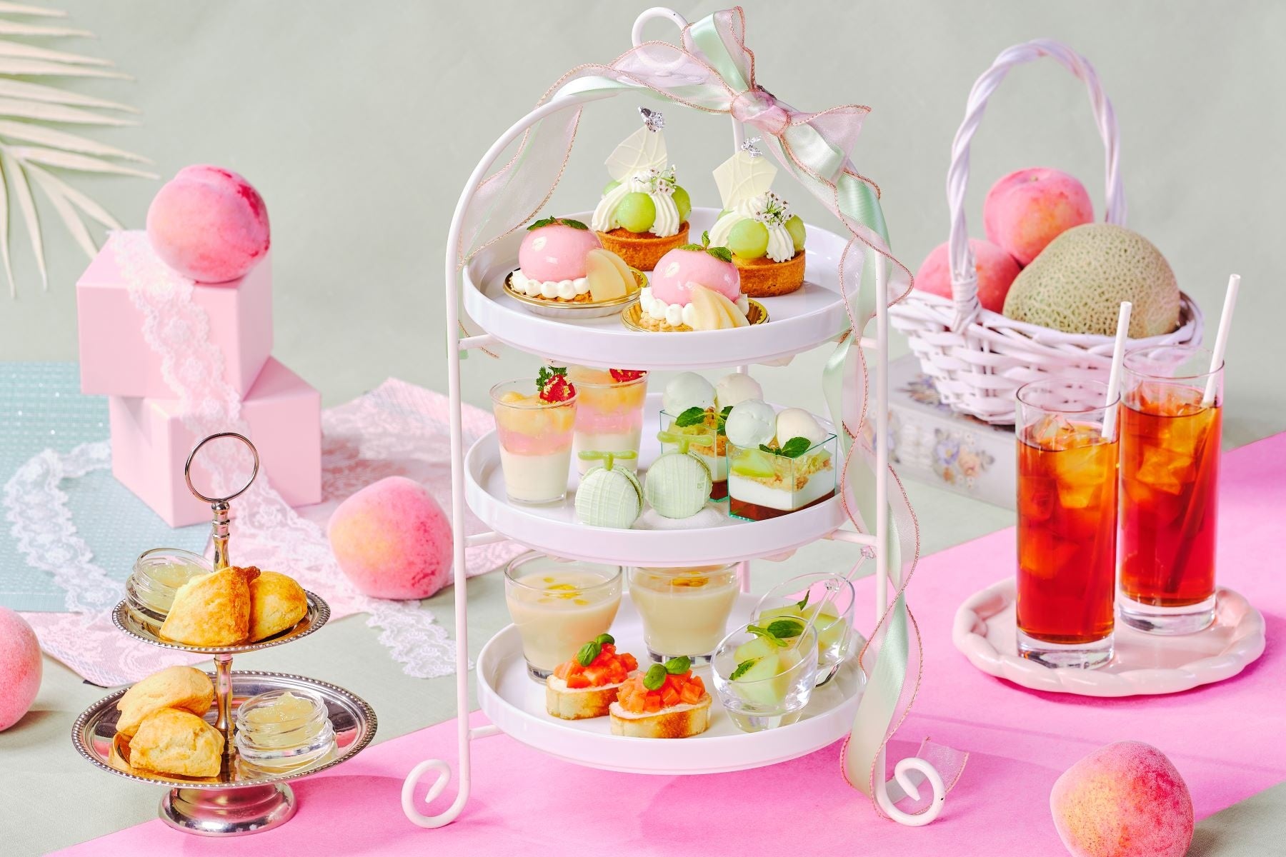 シーズンごとに変わるテーマで、専属パティシエが手掛ける繊細で華やかなスイーツが人気のアフタヌーンティー。今回は、初夏のフルーツ“桃”と“メロン”を堪能できるスイーツをご用意しました。