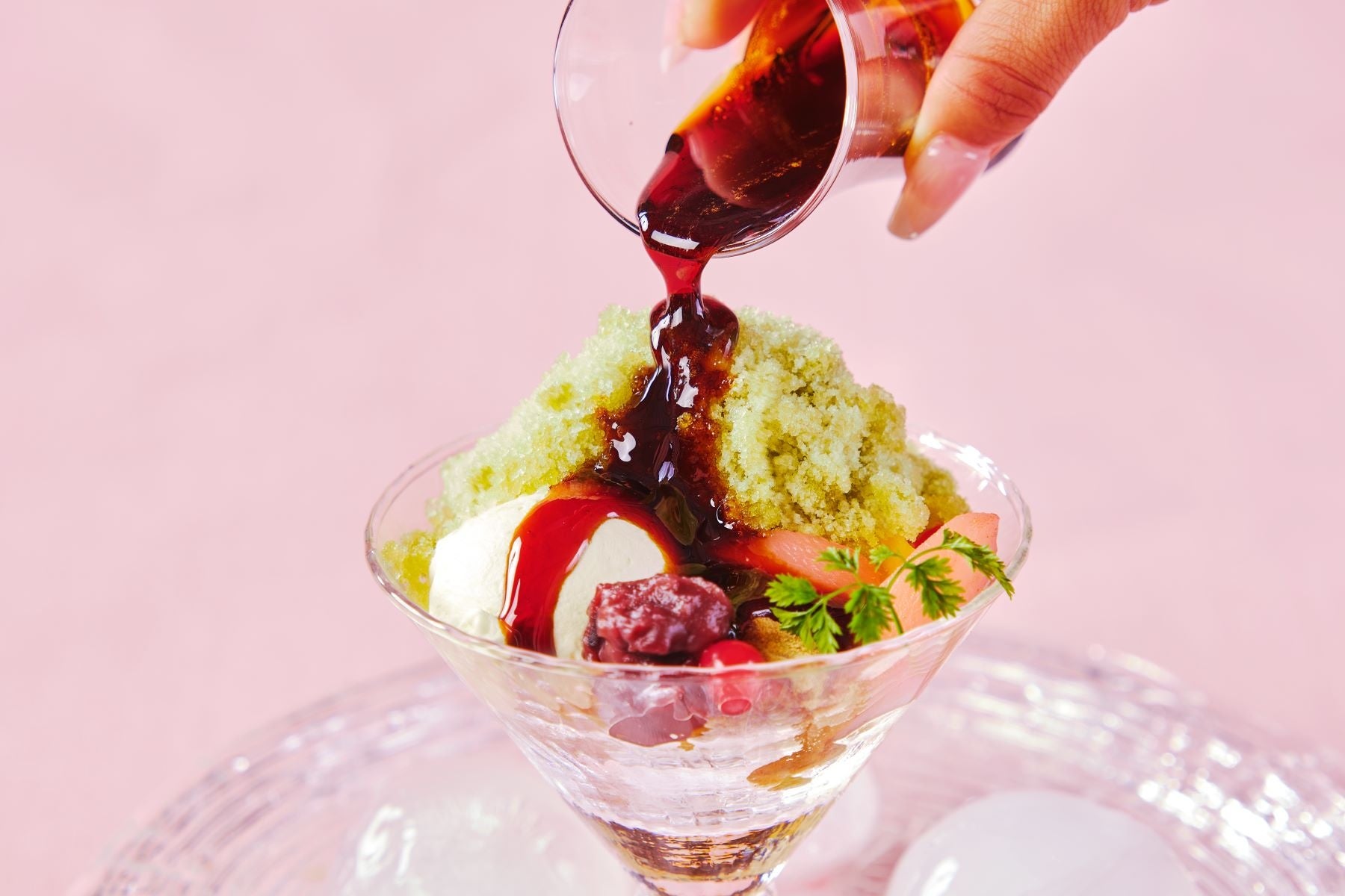 また、夏にぴったりのスイーツ「桃あんみつ」もオプションとして販売決定。濃厚なミルクのぜいたくな味わいが特徴のハーゲンダッツ アイスクリーム『バニラ』を中心に桃の果実、あんこ、白玉、わらび餅など彩り豊かな食材が並び、さらにその上に、シャリシャリの食感の抹茶氷を振りかけることで多彩な食感が楽しいスイーツです。