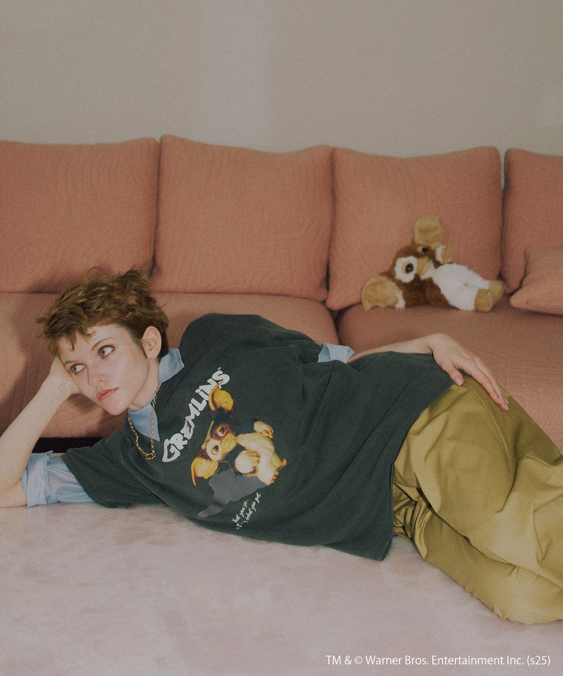 ギズモのイラストをフロントに大きくプリントした、インパクトのあるデザイン。ピグメント加工による色落ち感と、ほどよくゆったりしたビッグシルエットで、こなれた雰囲気に仕上がります。