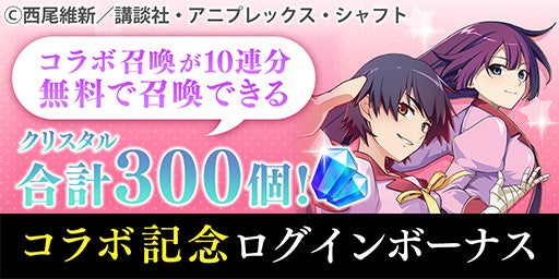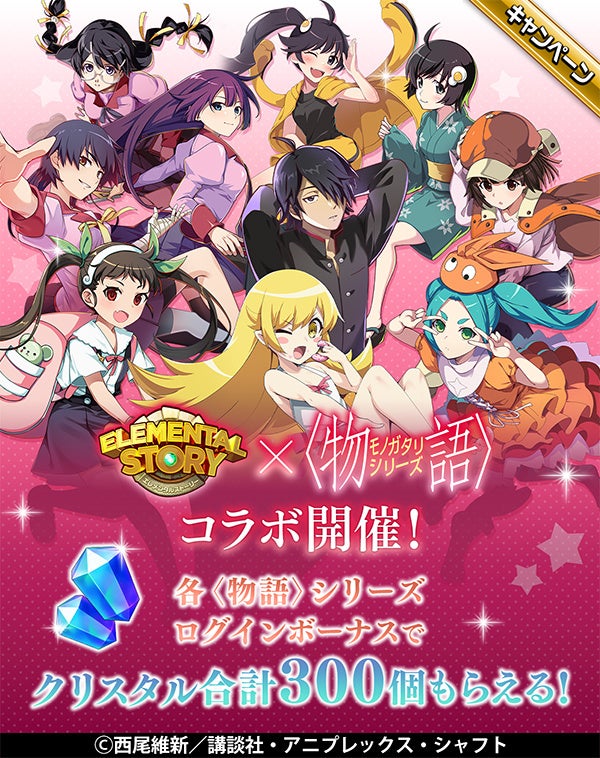 エレメンタルストーリーが〈物語〉シリーズとコラボ!ログインボーナスでコラボ召喚10連分のクリスタルをGETしよう!さらに2月22日(土)には豪華アイテムをプレゼント!