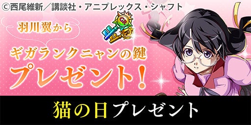 「羽川翼から猫の日プレゼント」キャンペーンを開催いたします。