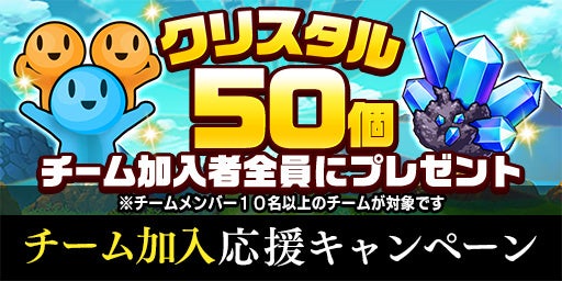 開催期間終了時点で10名以上のチームに加入していたユーザー様全員にクリスタルを50個プレゼントいたします。