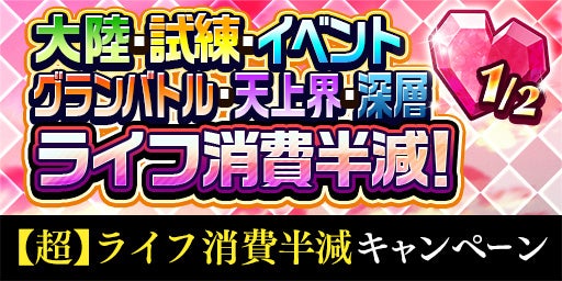 期間中、 天上界Ⅱ「珠玉の夢想物語」で消費するライフが半減されます。