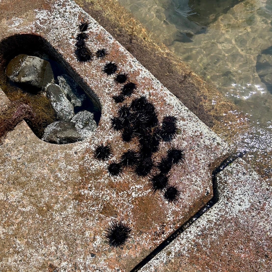 同校では、海洋環境保全と養殖ウニの生育を目的に駆除されたムラサキウニを廃棄野菜で養殖し、食用化を目指す取り組みを行っていました。今回、その養殖実験において廃棄されていたウニ殻をアパレルの染料材料として活用する連携プロジェクトを立ち上げ、“TOO GOOD TO WASTE”の製品化が実現しました。