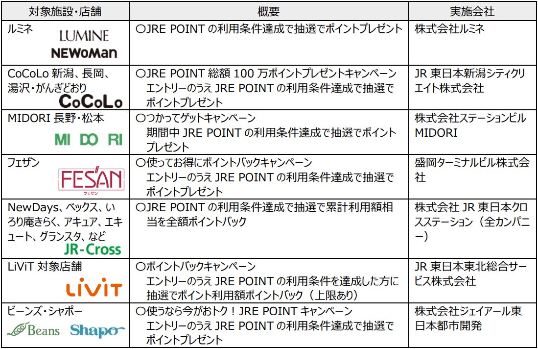 1. JRE POINT WEBサイトでエントリーのうえ、JR東日本の駅ビルなどの対 象店舗でお買い上げいただくと、通常100円(税抜)ごとに1ポイント貯まるJRE POINTが10ポイント貯まります。