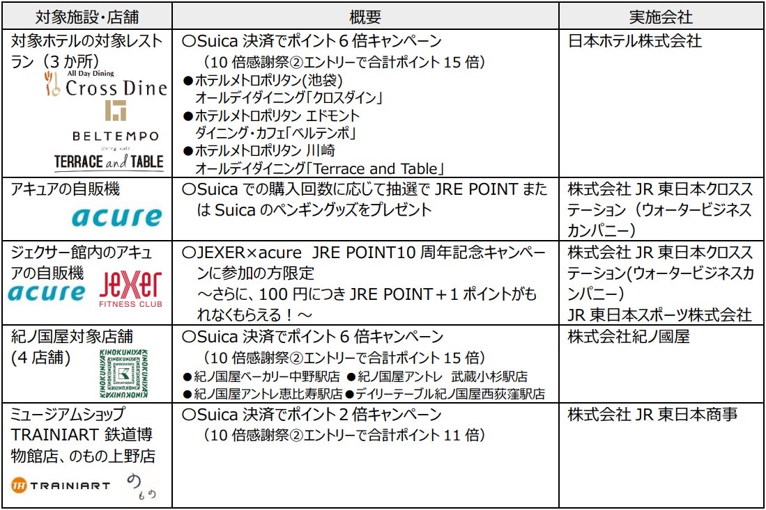 〇10周年記念の目玉として、JRE POINT会員の皆さまへ日頃の感謝の気持ちを込めて、ポイント10倍キャンペーン等を開催します!