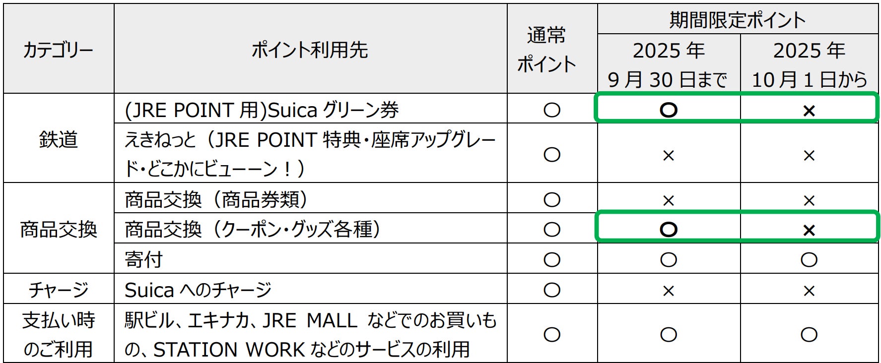 〇あわせて(JRE POINT用)Suicaグリーン券へのポイント交換をモバイルSuicaアプリから交換できるようサービスを拡充し、期間限定ポイントが利用できるサービスを一部変更します。